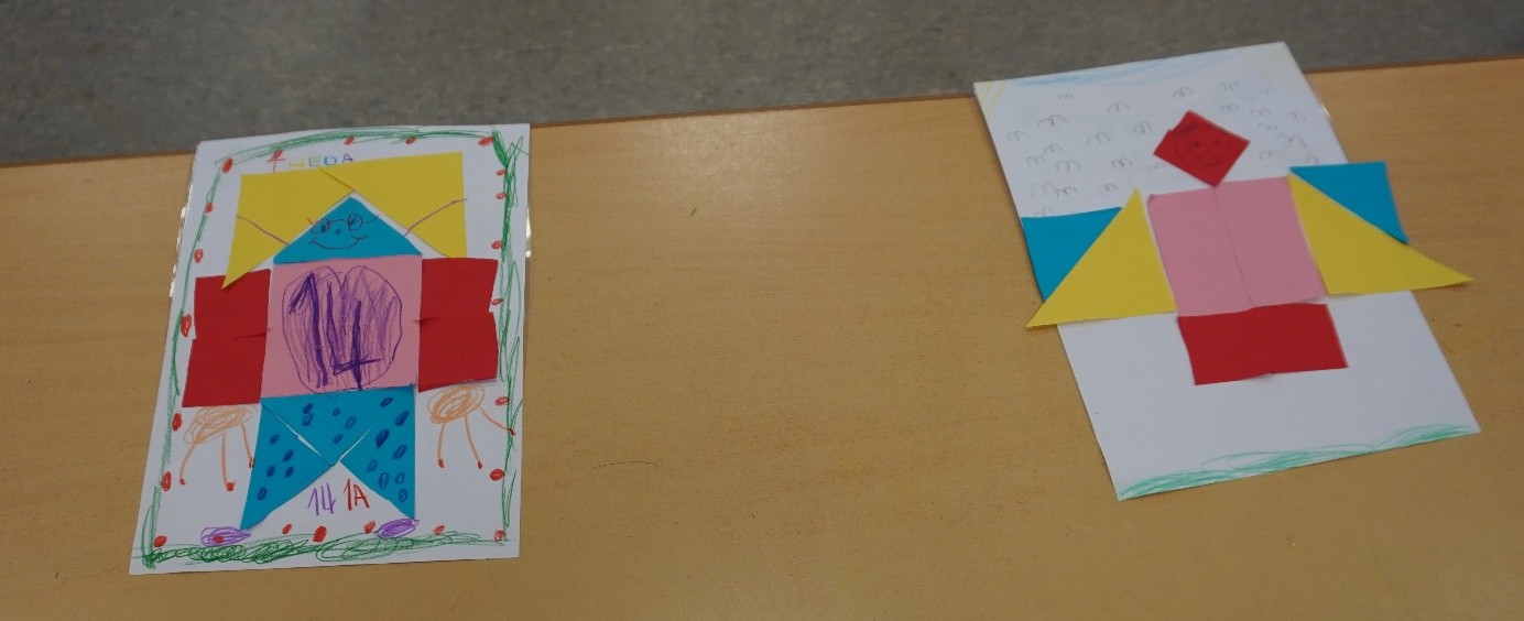 Klasse 1a gestaltet Figuren aus geometrischen Formen.