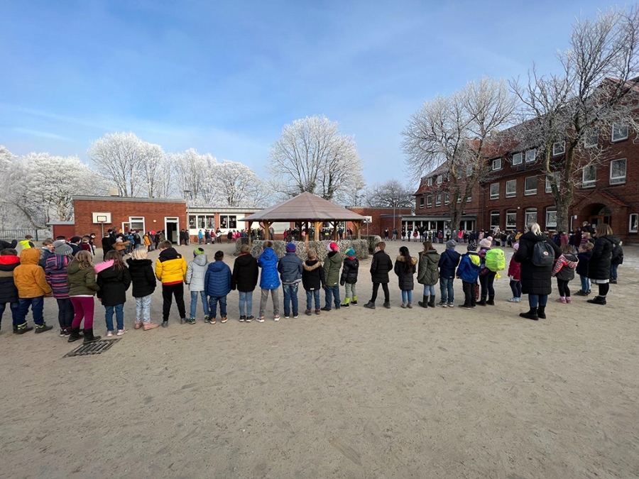 Schulgemeinschaft trifft sich ein letztes Mal zum weihnachtlichen Singen.