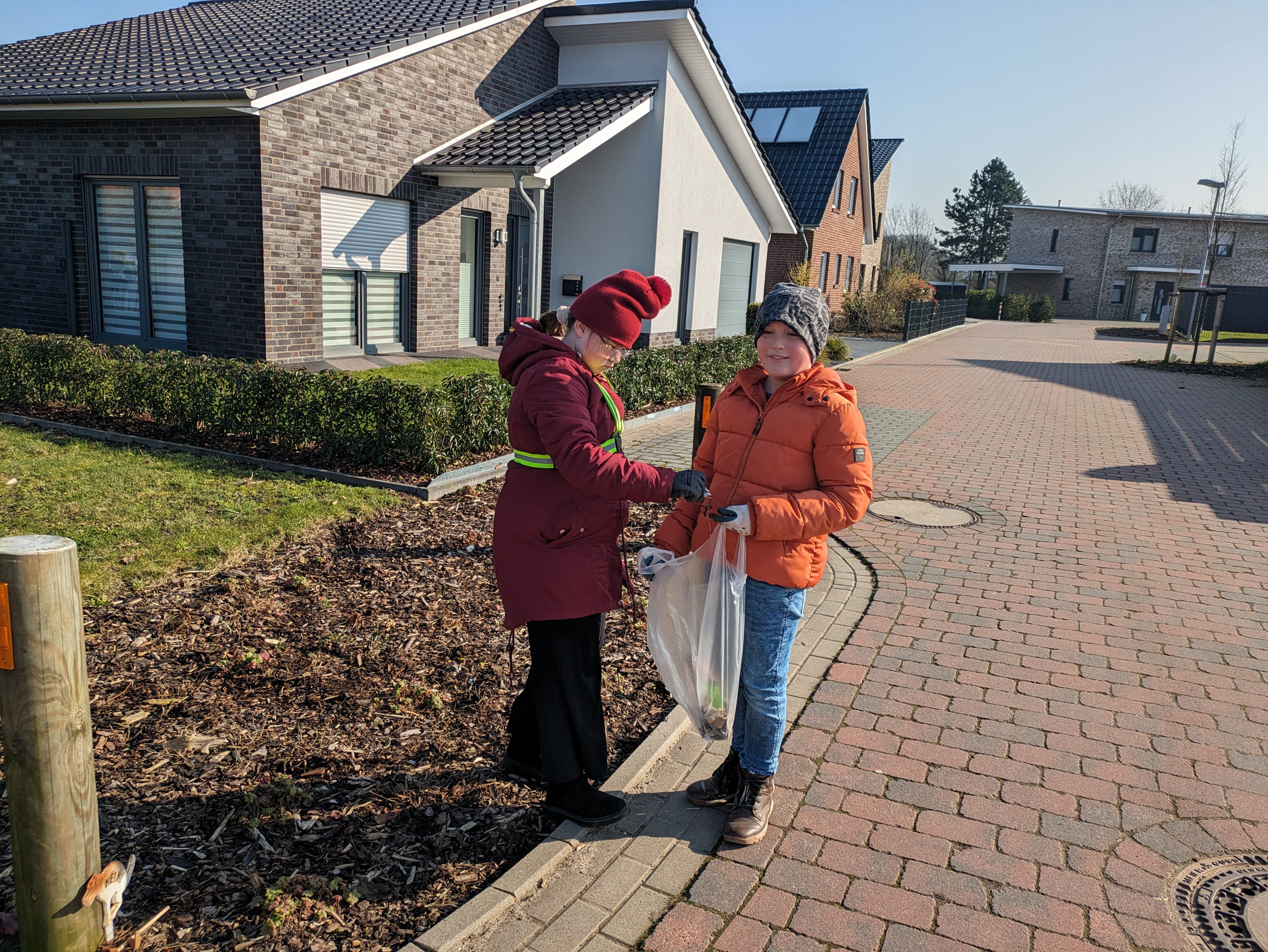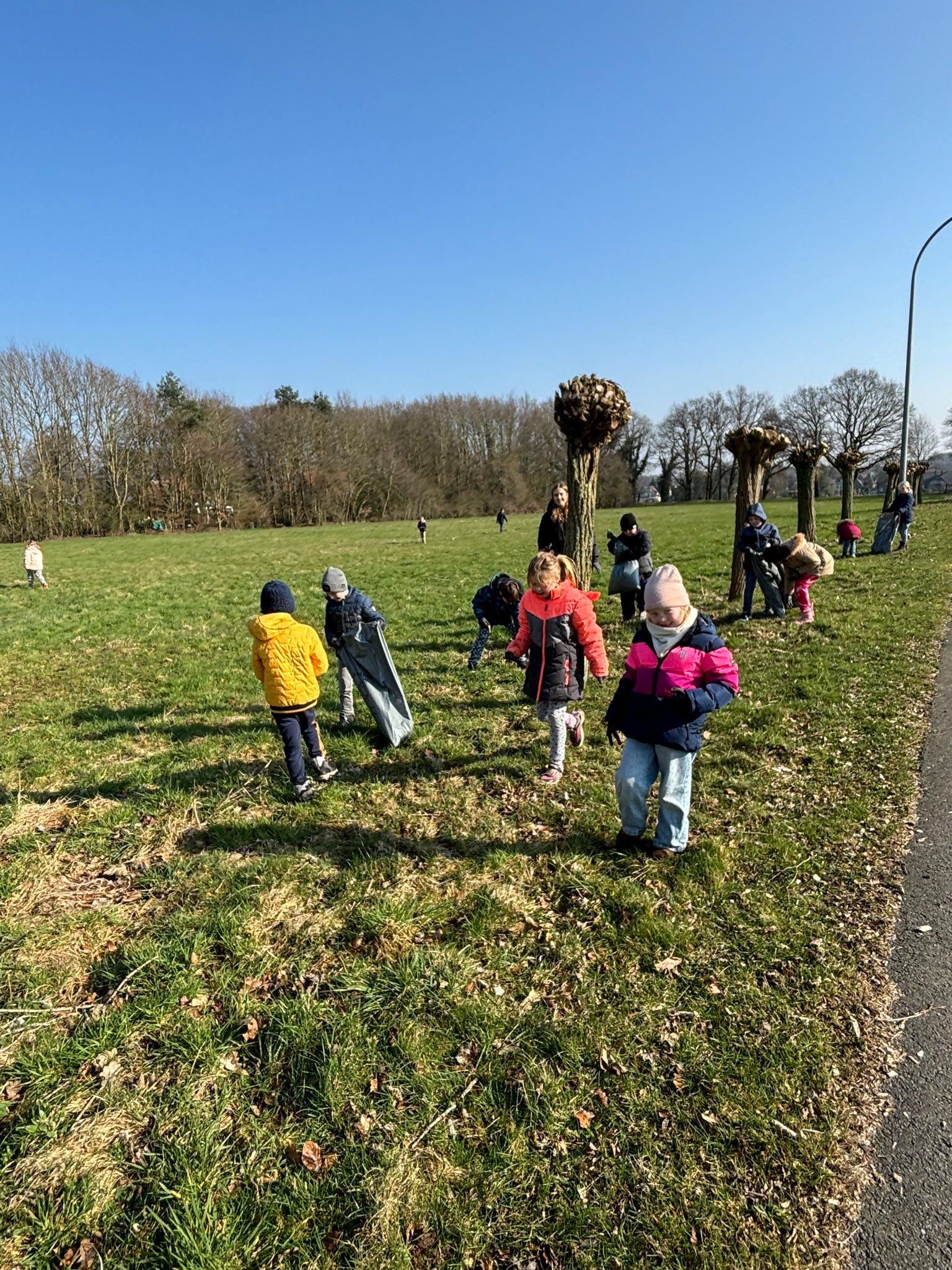 Wie viel Müll sich an den Straßen rund um die Schule sammelt, haben die Schüler*innen beim diesjährigen Frühjahrsputz herausgefunden. Ausgerüstet mit Handschuhen, Mülltüten und -greifern, suchten sie im Klassenverband auf verschiedenen Routen allerlei Verpackungen und Unrat auf. Dadurch wird nicht nur die Umgebung sauberer, sondern die Kinder kommen ganz praktisch mit dem Thema Umweltverschmutzung in Kontakt. Dass die Sonne sich an diesem Tag auch von ihrer beste Seite zeigte, trug zur guten Stimmung der Müllsammler*innen bei.