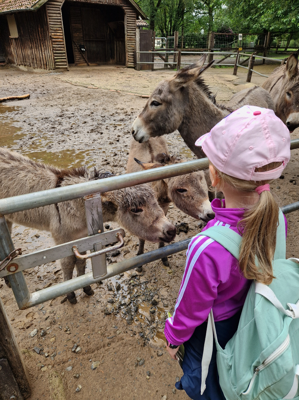 Am Mittwoch den 29. Mai ging es für die zweiten Klassen mit dem Bus in Richtung Tierpark Ströhen. Wir konnten eindrucksvolle Stunden im Park verbringen und dabei viele bekannte und weniger bekannte Tiere bestaunen. So sahen wir zum Beispiel Nandus, verschiedene Affen und Tiger beobachten. Zwischendurch wurden die Esel gefüttert, Pferde gestreichelt oder in der Entdeckerscheune fleißig geklettert. Zudem wurde uns während einer Führung die Haltung, Pflege und die Besonderheiten einiger Tierarten erklärt. Hierbei ist die Tierpflegerin unter anderem auf die Kattas eingegangen, bei denen es derzeit ein kleines Kattaäffchen gibt, dass von der Tierpflegerin aufgezogen wird. Dieses Äffchen konnten wir zunächst aus der Ferne und anschließend im Cafe aus der Nähe noch beobachten. Zudem sind an diesem Tag mehrfach die Elefanten durch den Park geführt worden - die hatten schon eine beachtliche Größe.