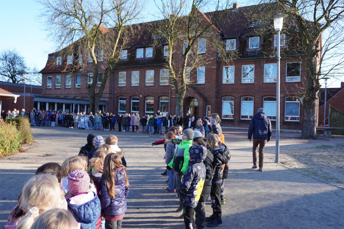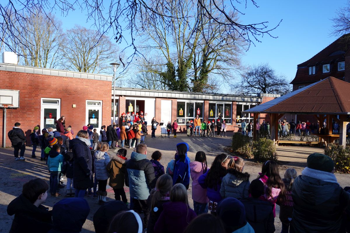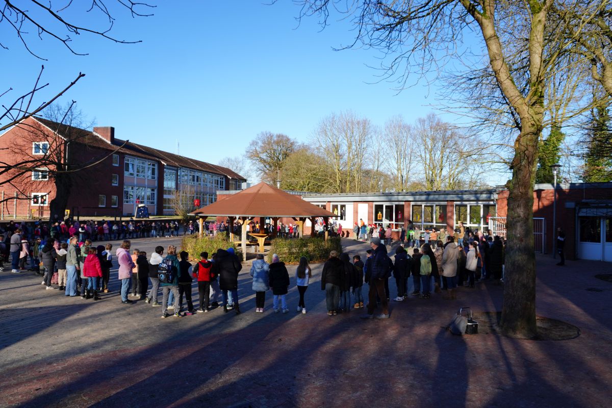 Jeden Freitag im Advent wird unser Schulhof zur Bühne für ein ganz besonderes Erlebnis: Die gesamte Schulgemeinschaft kommt zusammen, um Weihnachtslieder zu singen und die Vorweihnachtszeit gemeinsam zu feiern.