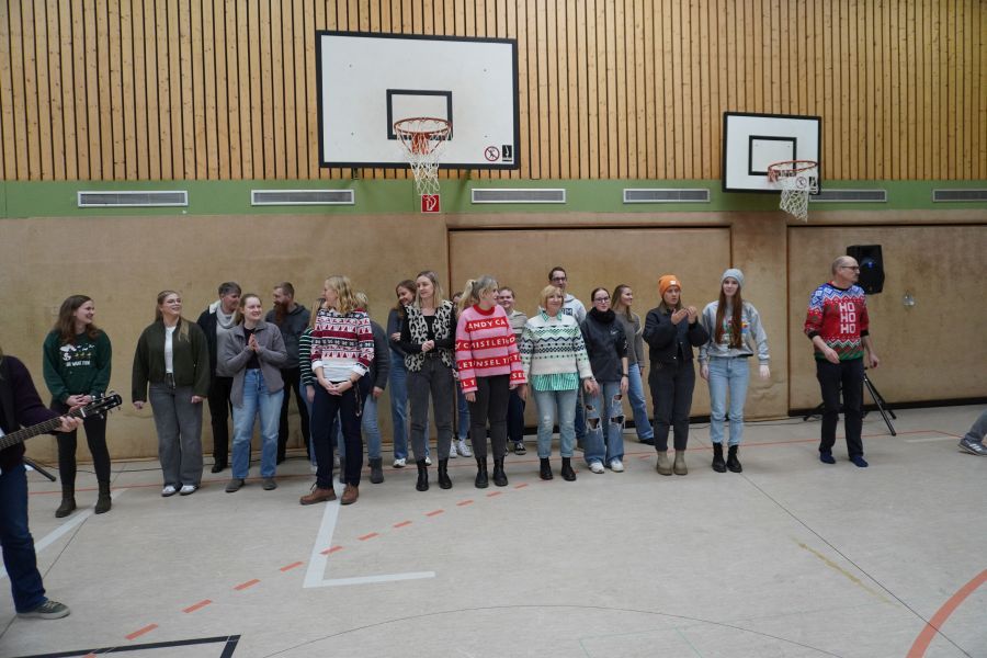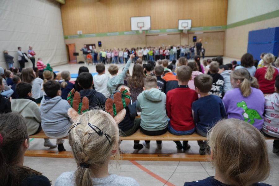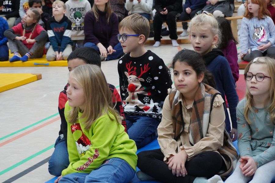 Am letzten Schultag vor den langersehnten Weihnachtsferien fand in unserer Schule die traditionelle Weihnachtsfeier der Schulgemeinschaft statt. Die prall gefüllte Sporthalle bot den perfekten Rahmen für ein abwechslungsreiches Programm, an dem alle Klassen mit Begeisterung teilnahmen.