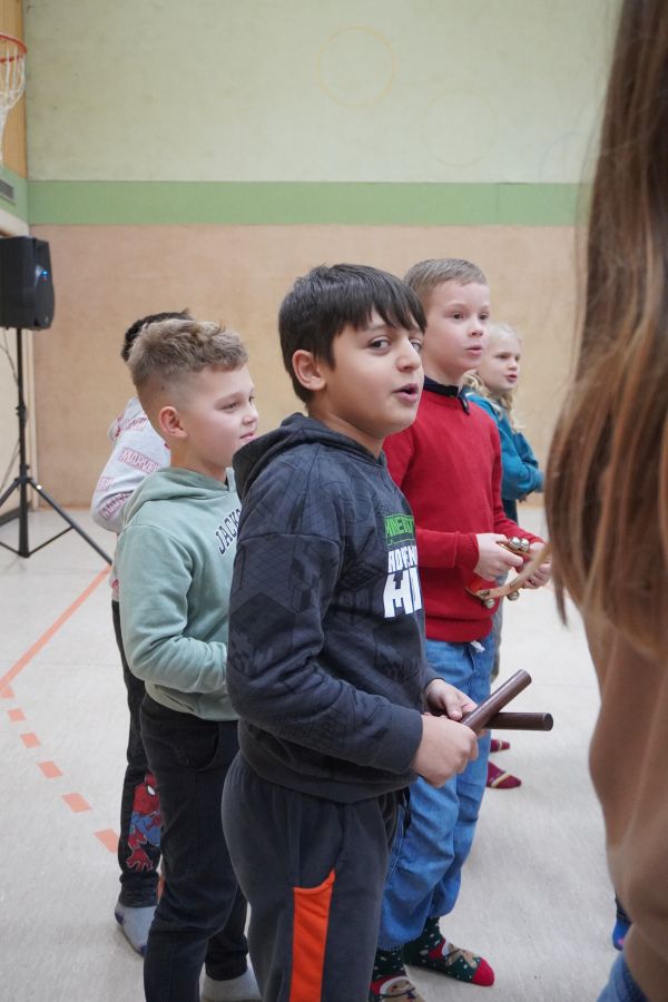 Den feierlichen Auftakt gestalteten die Lehrkräfte, die mit dem Lied "Winter Wonderland" die Kinder in weihnachtliche Stimmung versetzten. Anschließend übernahmen die Schüler*innen das Programm. Jede Klasse hatte etwas Besonderes vorbereitet: Gedichte, Lieder oder kleine Beiträge, die die Vorfreude auf das Fest spürbar machten.