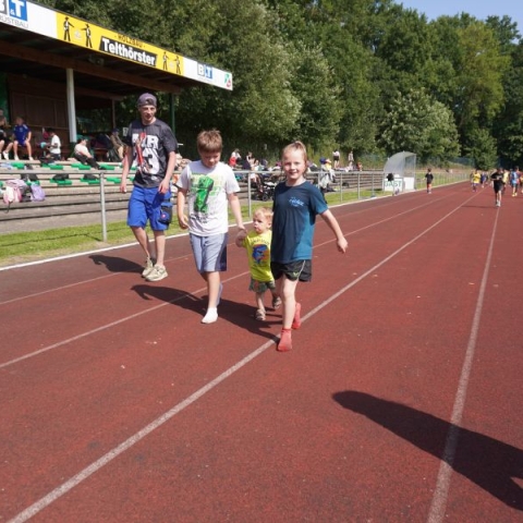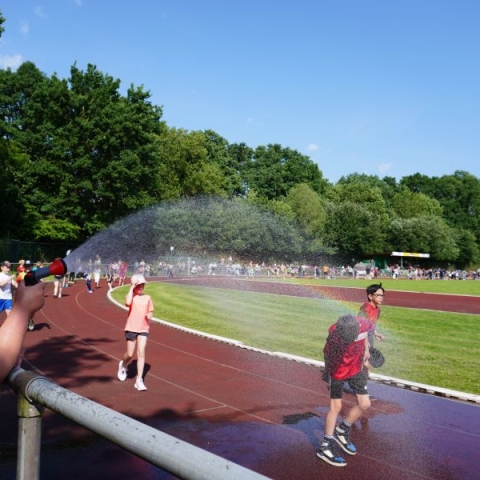 Einen besonderen Dank möchten wir an dieser Stelle an den Förderverein Barnstorfer Grundschulkinder aussprechen, der wieder für die Verpflegung während des Laufs – sowohl für die Läufer als auch für die vielen Zuschauerinnen und Zuschauer – gesorgt hat. Die Wasserpausen entlang der Tartanbahn und die kalte, erfrischende Dusche waren bei dem sonnigen Wetter eine willkommene Abkühlung, die den Kindern geholfen hat, weiterhin motiviert mitzulaufen.