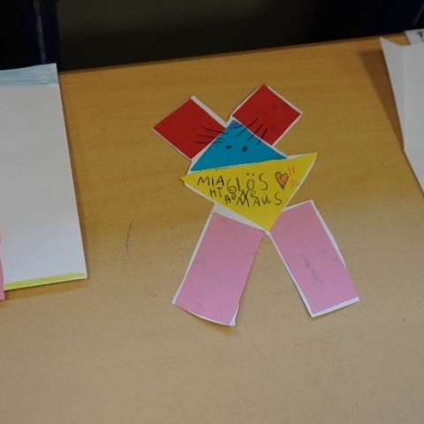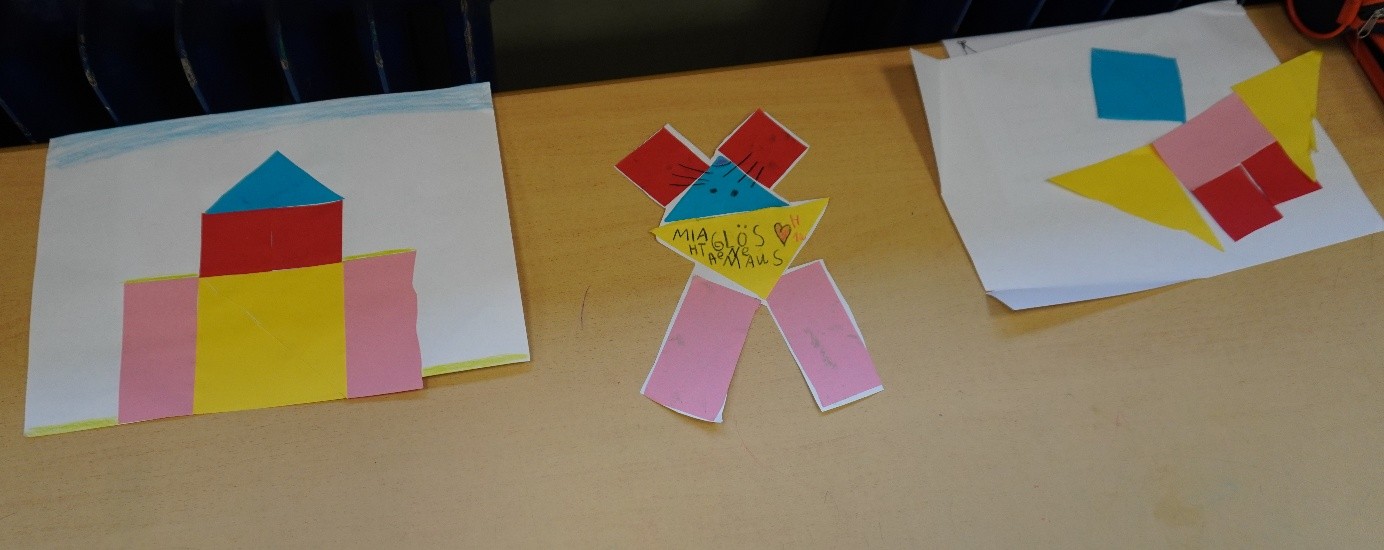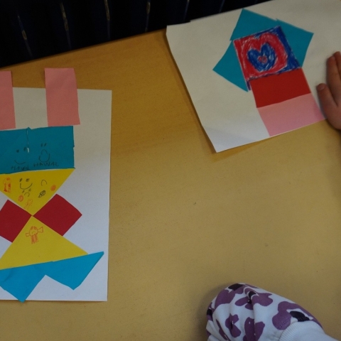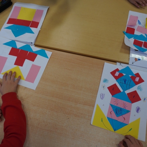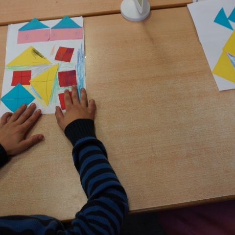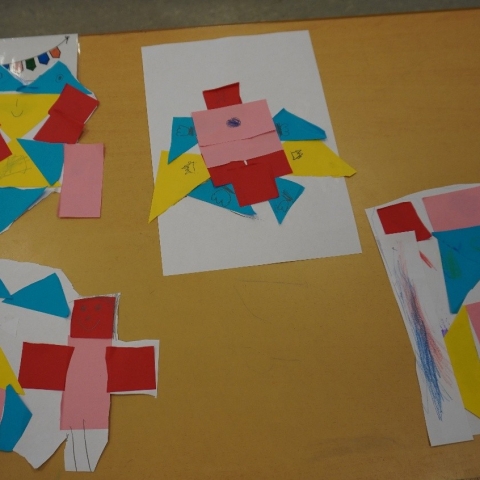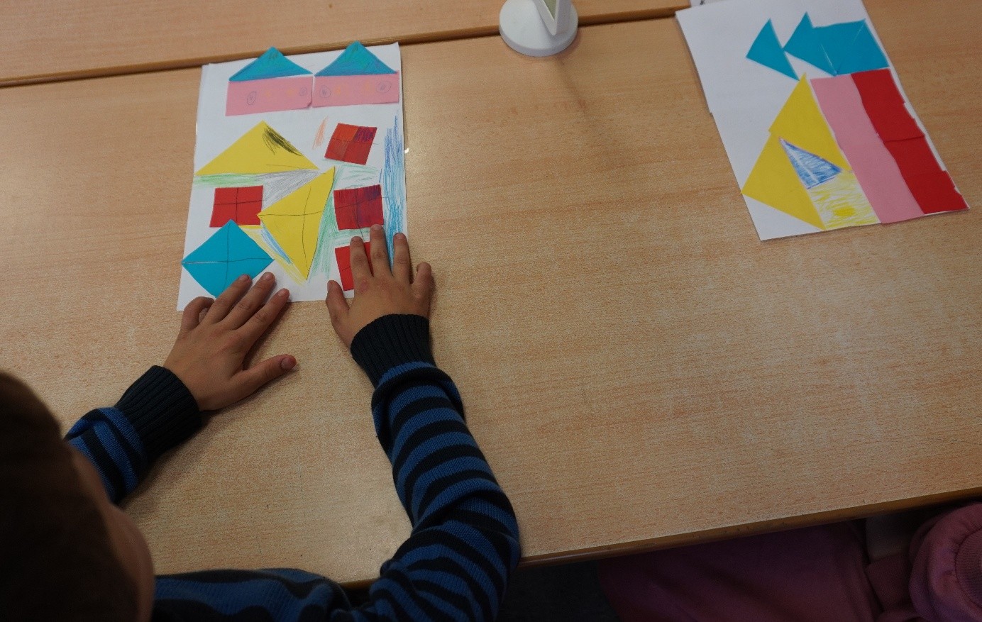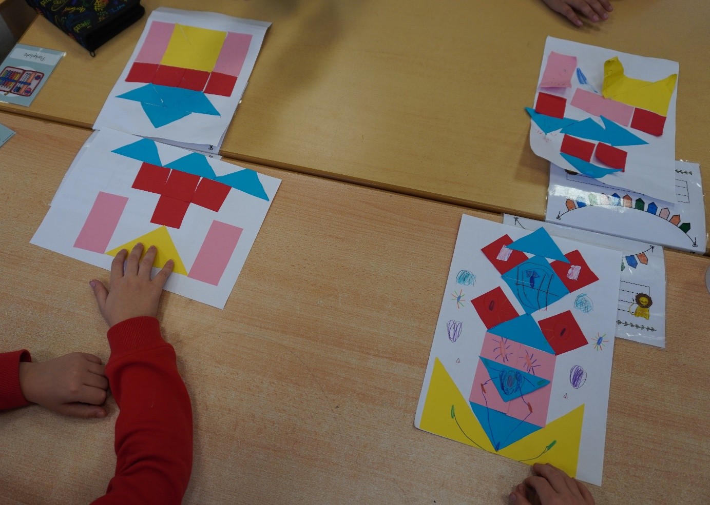 Klasse 1a gestaltet Figuren aus geometrischen Formen.