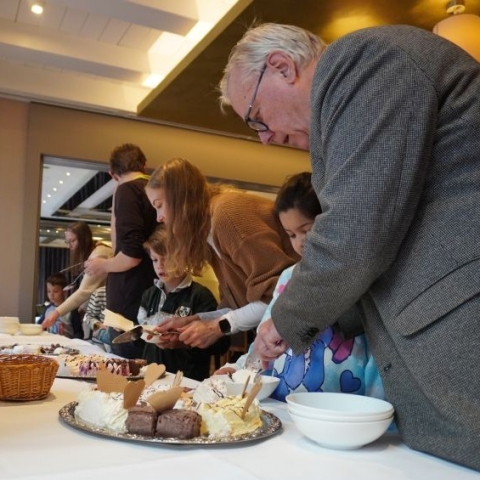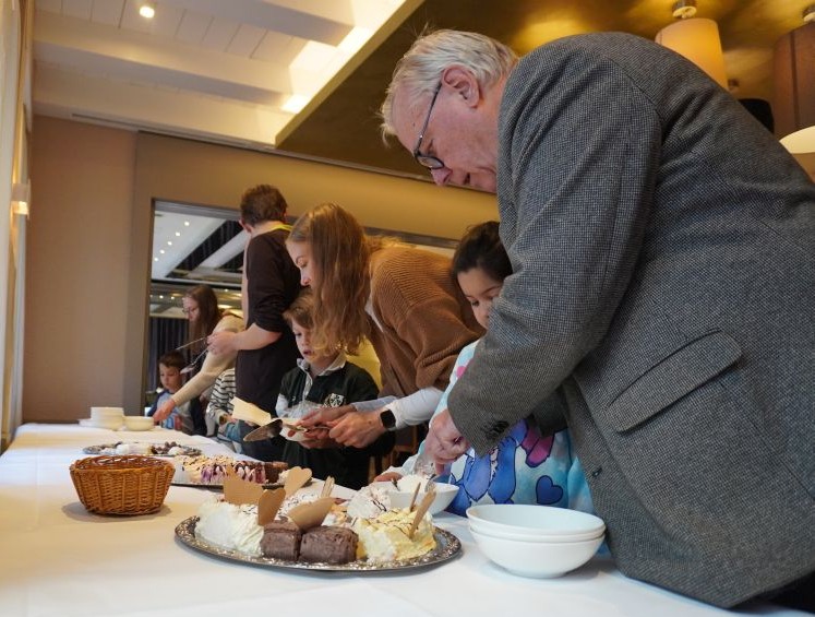 Im Hotel erwartete die Kinder ein buntes Eisbuffet. Trotz großer Aufregung zeigten sich alle erstaunlich geduldig, während ihnen nacheinander die erste Portion Eis ausgegeben wurde. Die Mitarbeitenden des Hotels gaben sich viel Mühe, jedem Kind seinen Wunsch zu erfüllen, und wurden dabei von vielen strahlenden Gesichtern belohnt.
