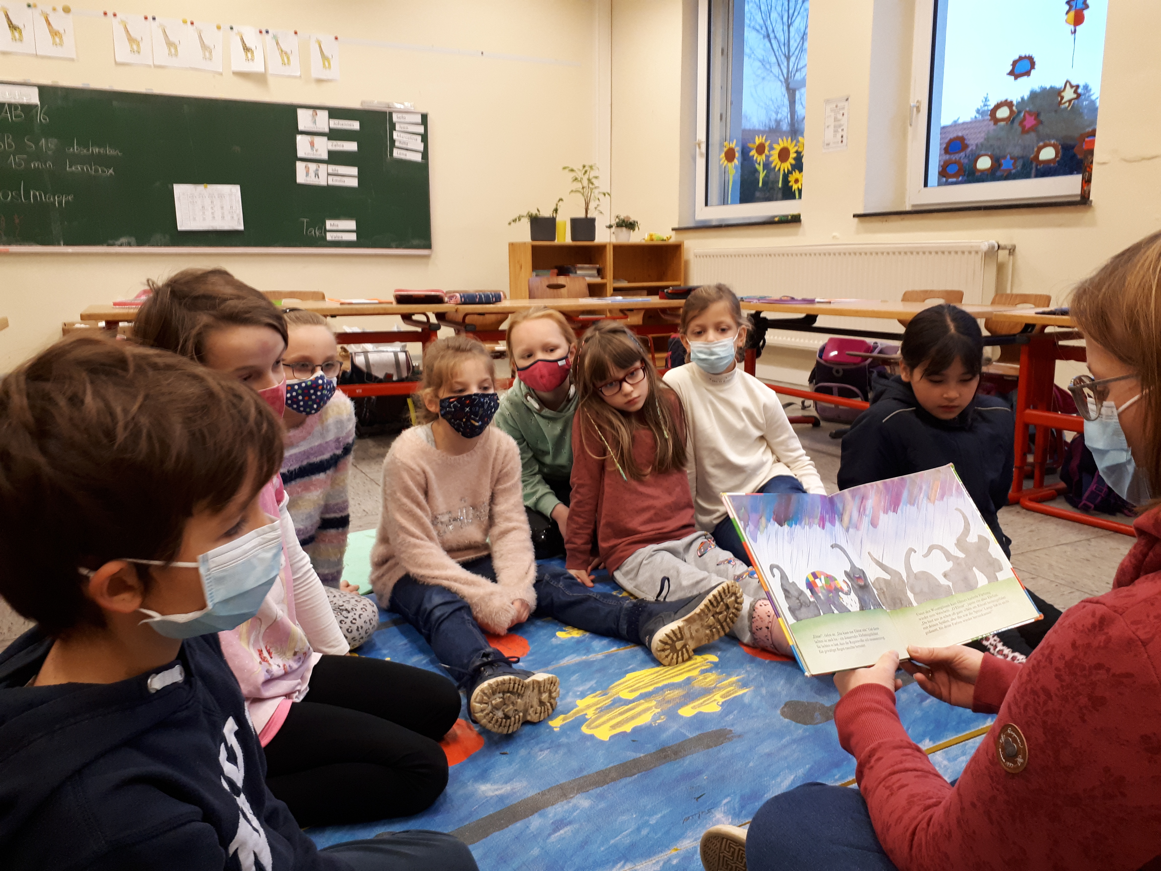Begeisterte Zuhörer*innen gab es am 19. November in allen Klassen unserer Schule. Denn am bundesweiten Vorlesetag, der jährlich als gemeinsame Initiative von der Wochenzeitung "DIE ZEIT", der Stiftung Lesen und der Deutsche Bahn Stiftung initiiert wird, wurden vielfältige Geschichten vorgelesen. Unter dem Jahresmotto "Freundschaft und Zusammenhalt" des Vorlesetages hörte die Klasse 1b beispielweise in der Geschichte "Emma, Abdullah und das tolle Geschenk", wie Emma ihrem Freund Abdullah, der kein Weihnachten feiert, trotzdem eine schöne Adventszeit bereitet.