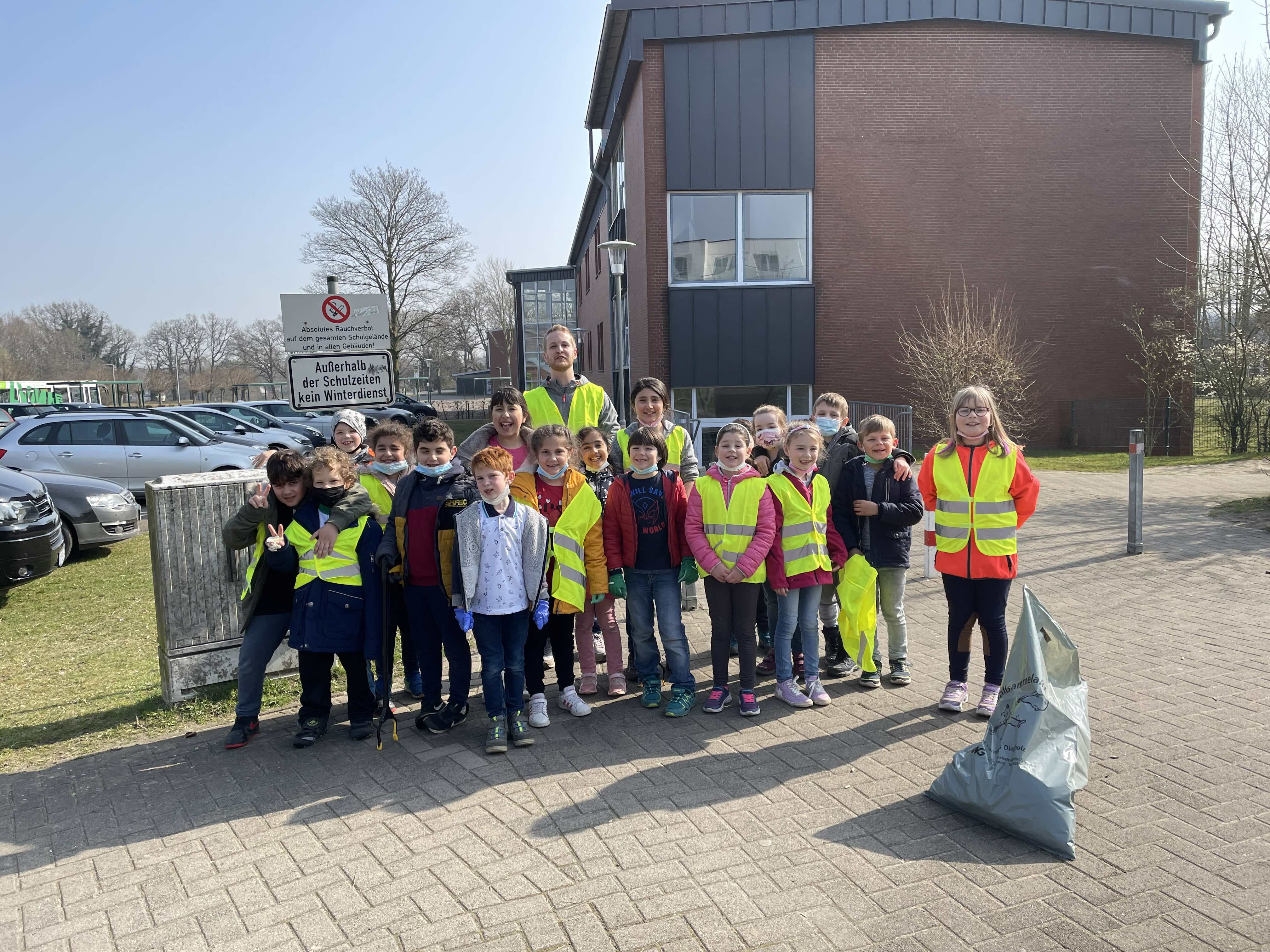 "Wir räumen auf!" hieß es auch wieder in diesem Jahr. Im Rahmen der Umweltwoche rief Barnstorfs Bürgermeister Fredy Albrecht zu sogenannten "Umweltspaziergängen" auf. Ausgerüstet mit Müllgreifern, Handschuhen, Mülltüten und Warnwesten machten sich unsere Kinder am 25. März auf, um verschiedene Straßen in Barnstorf und Drentwede zu säubern. "Neben der Tatsache, dass es durch unser Mittun sauberer wird, lernen die Kinder auch, dass sie mitverantwortlich für die Gestaltung ihrer Umwelt sind", kommentierte Schulleiterin Henrike Geißler die Aktion.