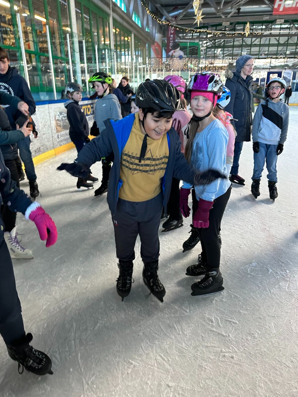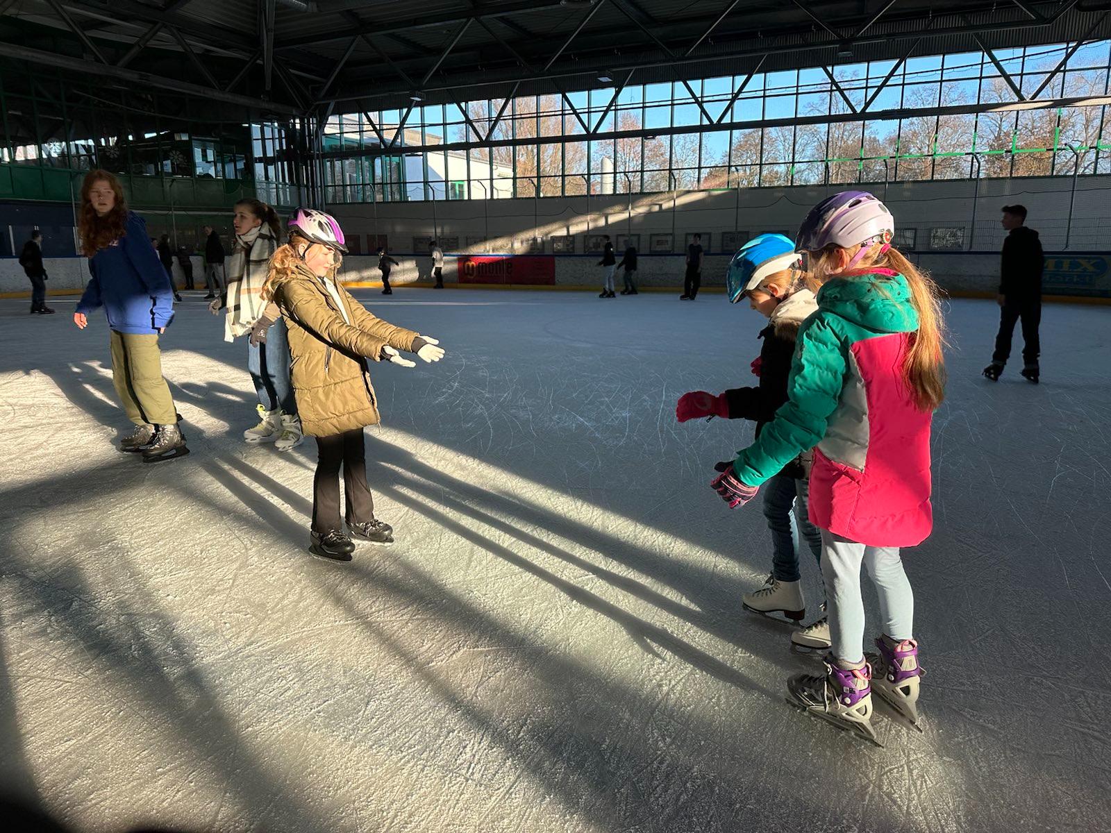Ab nach Bremen ging es in der Adventszeit für die 4. Klassen. Zusammen mit ihren Klassenlehrerinnen Frau Ohlig, Frau Apke, Frau Peinz und Frau Lange besuchten die Schüler*innen die Eishalle "Paradice" und konnten zeigen, wie gut sie schon auf den Kufen stehen. Auch wenn aller Anfang bekanntlich schwer sein kann, war es für alle ein toller, aufregender Tag, der viel Spaß gemacht hat!