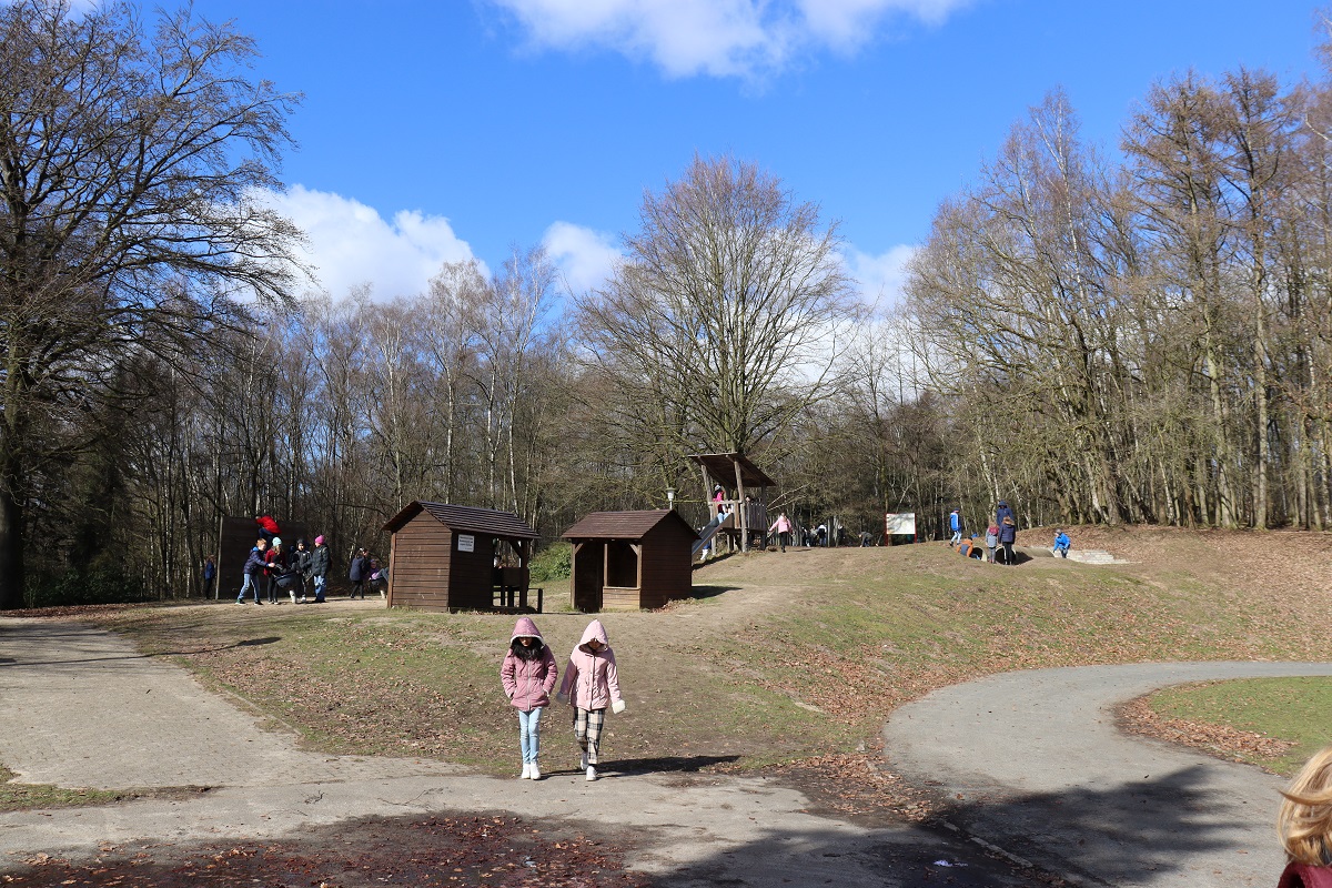 Die Vorfreude der Schülerinnen und Schüler aus dem vierten Jahrgang war groß. Seit langem wurde auf den Tag der Klassenfahrt hingefiebert. Am Mittwoch den 15.03.2023 ging es dann los. Ganz nach dem Motto „Das bewegte Klassenzimmer“ warteten drei aufregende Tage in der Jugendherberge Damme auf uns. Nach der Ankunft wurde zunächst der weitläufige Spielplatz genauestens unter die Lupe genommen und die Freunde des Fußballs konnten auf dem Fußballplatz die ersten Spiele austragen. Nach dem gemeinsamen Mittagessen wurden ganz aufgeregt die Zimmer bezogen und eingerichtet. Beim Beziehen der Betten wurde sich tatkräftig unter die Arme gegriffen, sodass alle recht zügig die anschließend anstehende Hausrallye lösen konnten. Zum frühen Nachmittag hin wurden die einzelnen Klassen dann vor die ersten kleinen Herausforderungen gestellt, die sie nur als gemeinsames Team lösen konnten. Beispielweise mussten sich die Kinder auf einem auf dem Boden liegenden Seil nach der Körpergröße aufstellen. Im zweiten Schritt wurde es dann kniffelig - ohne zu sprechen mussten sich die Mädchen und Jungen der Größe ihrer Zimmernummern nach aufstellen, wobei mindestens ein Fuß immer auf dem Seil bleiben musste. Außerdem gab es eine Wanderung rund um den Dammer Bergsee. Während der Wanderung wurden verschiedene kooperative Spiele gespielt. Hierbei wurde immer wieder unter Beweis gestellt wie wichtig die Kommunikation unter den SchülerInnen ist. Nach Einbruch der Dunkelheit wurde bei der Nachtwanderung die nähere Umgebung der Jugendherberge erkundet.