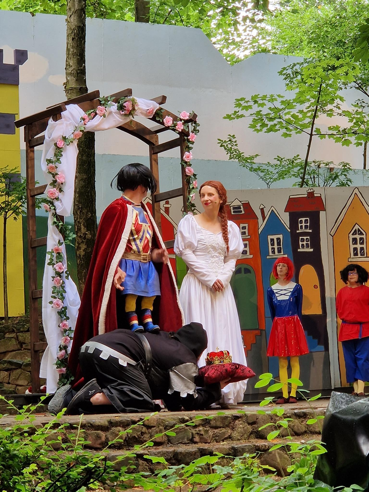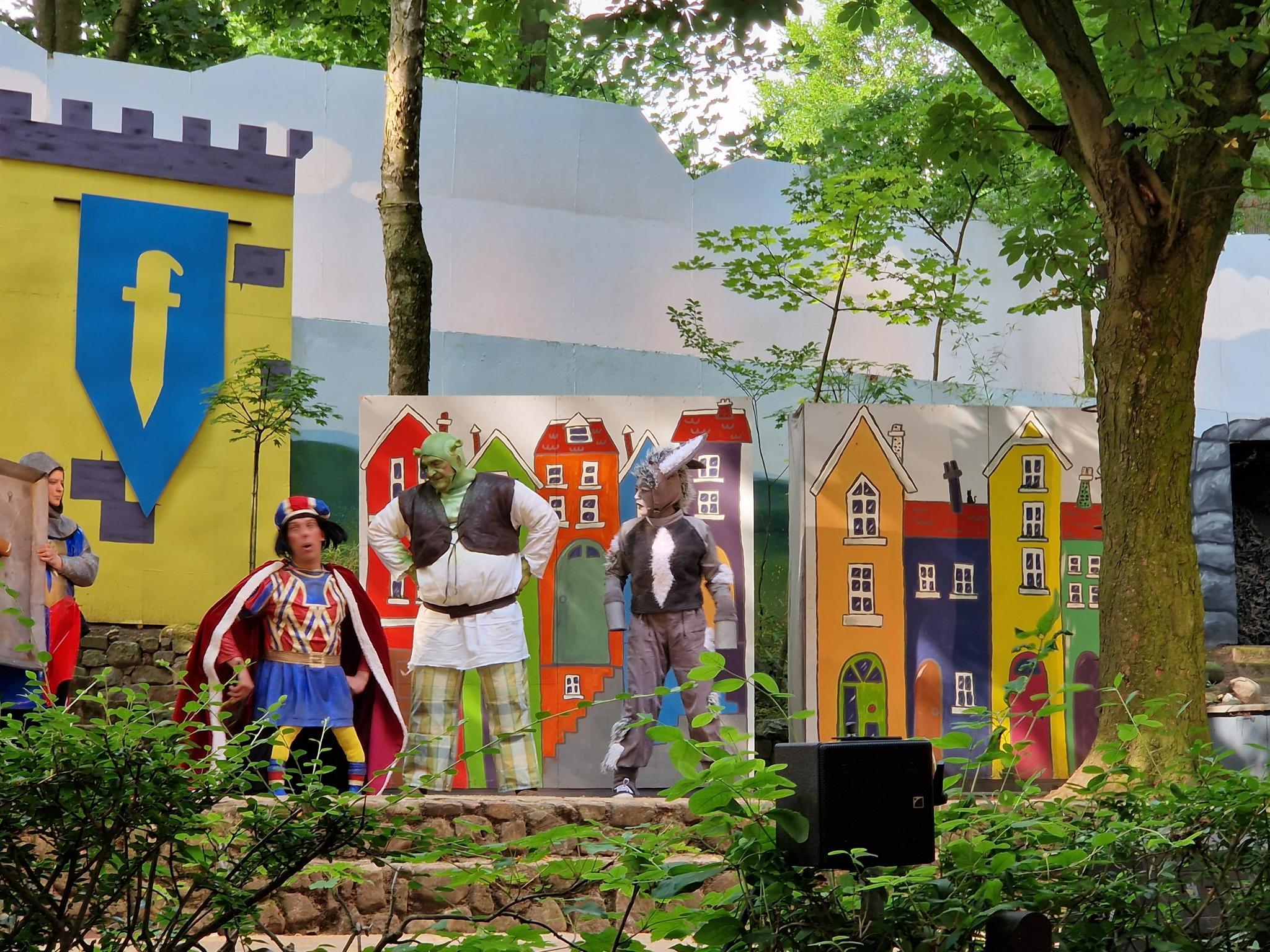 Früh morgens fuhren die Busse los, damit alle Kinder und Lehrkräfte unserer Schule pünktlich um 09.00 Uhr auf den Bänken der Freilichtbühne in Lohne Platz nehmen konnten. Denn dort warteten Shrek und seine Fiona auf ihre Zuschauer*innen, um in den folgenden zwei Stunden eine Aufführung voller Witz und Heiterkeit zu präsentieren - Hochzeit am Ende inklusive. Den Schüler*innen und Lehrkräften gefiel das Stück so gut, dass es sie zwischenzeitlich nicht mehr auf den Sitzen hielt. Daher sind wir uns sicher, dass wir auch 2024 die Aufführung in Lohne fest in unserern Terminkalender schreiben werden.