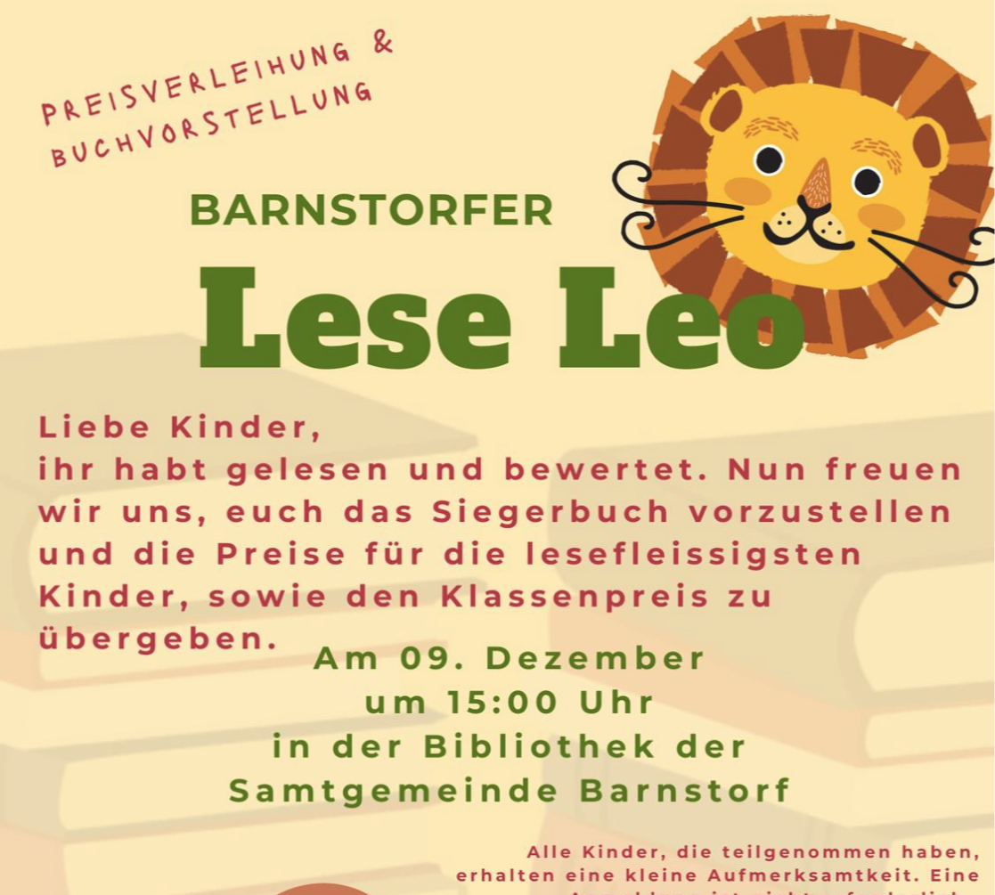 Am 09. Dezember um 15.00 Uhr werden in der Biblitohek Barnstorf die Preise für die fleißigsten Leser*innen übergeben.